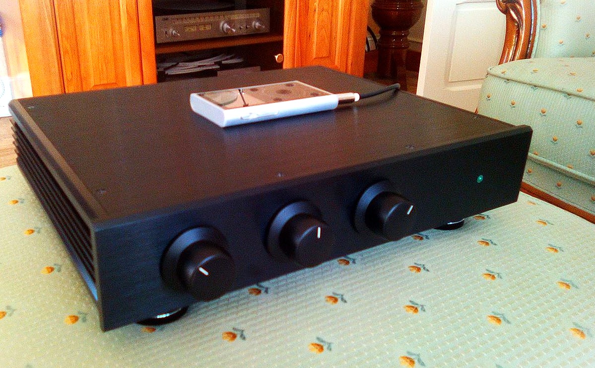J’utilise par ailleurs des composants électroniques de qualité : condensateurs Mundorf, Jantzen, Nichicon… potentiomètres à résistances commutées… câbles isolés PTFE, modules Sparkos, prises rhodium…